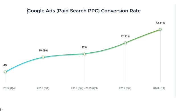 Thanks to our targeting of high-intent audiences and optimizing budget allocations, this law firm's Google Ads conversion rate soared 5X by Q1 of 2020.