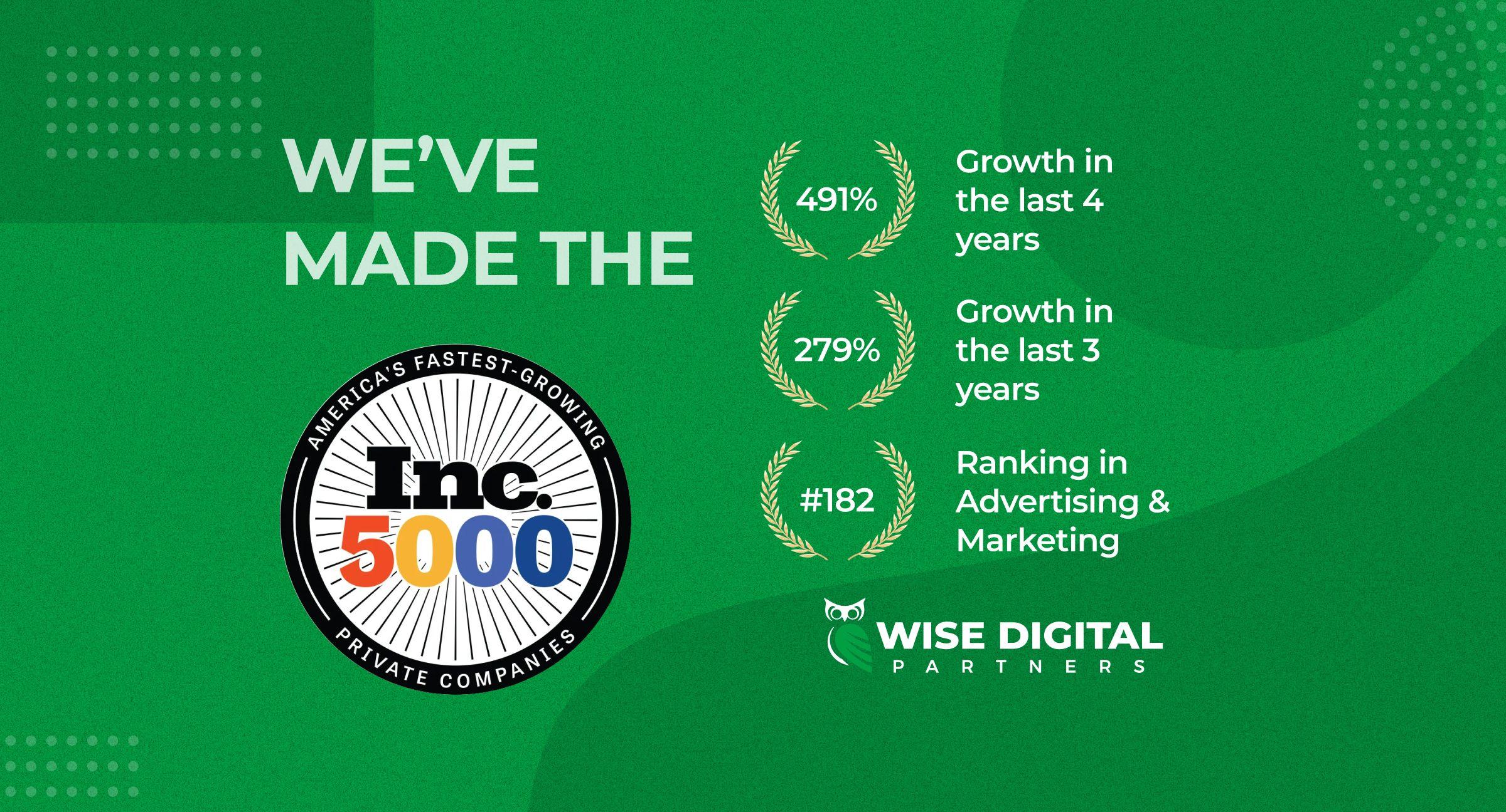 We just learned that WISE Digital Partners took the 1,876 slot on the Inc. 5000 list—that puts us in the top 40% of the most prestigious ranking of the fastest-growing private companies in the country. Needless to say, this recognition is validating.