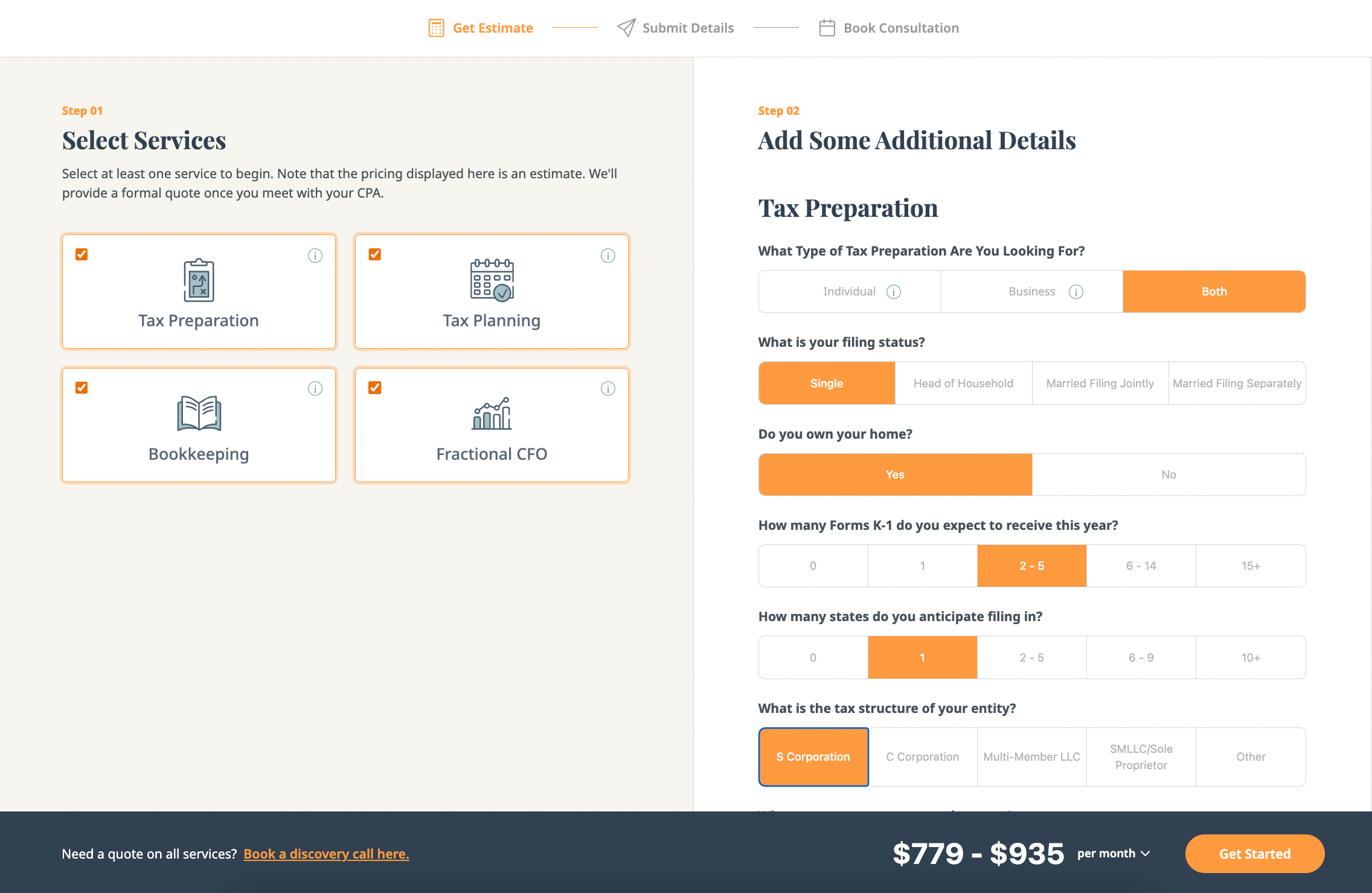 Far beyond the typical accounting website, we’ve also built custom tools for our accounting clients to run their businesses better. These include custom calculators that provide instant new client pricing estimates, reducing time spent on consultations while prequalifying leads before they reach your crowded inbox.