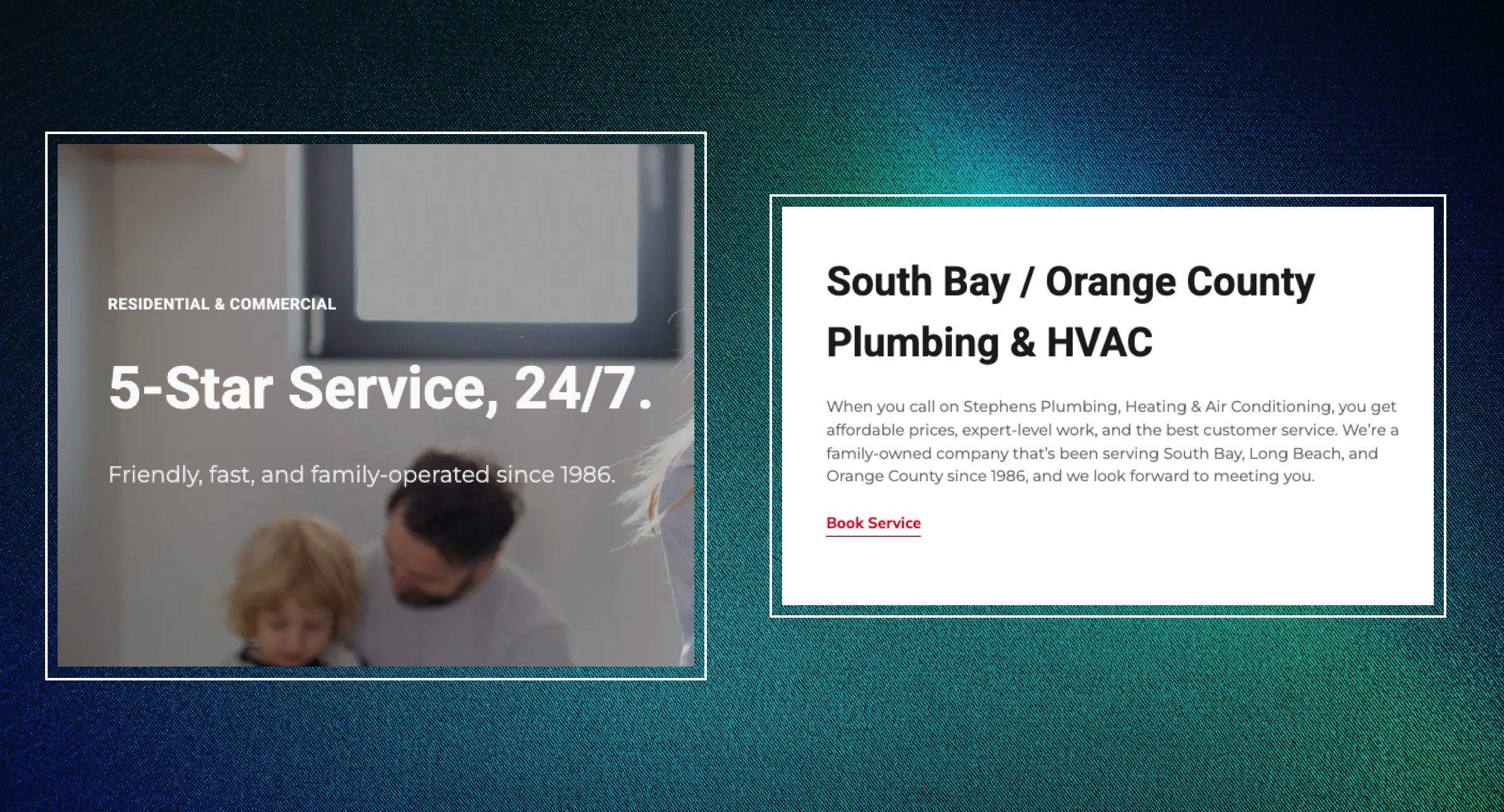 While in the same sector, Stephens Plumbing, Heating & Air Conditioning takes a more direct, service-oriented approach. Their brand voice is more centered on their extensive experience, affordable prices, expert-level work, and customer service.