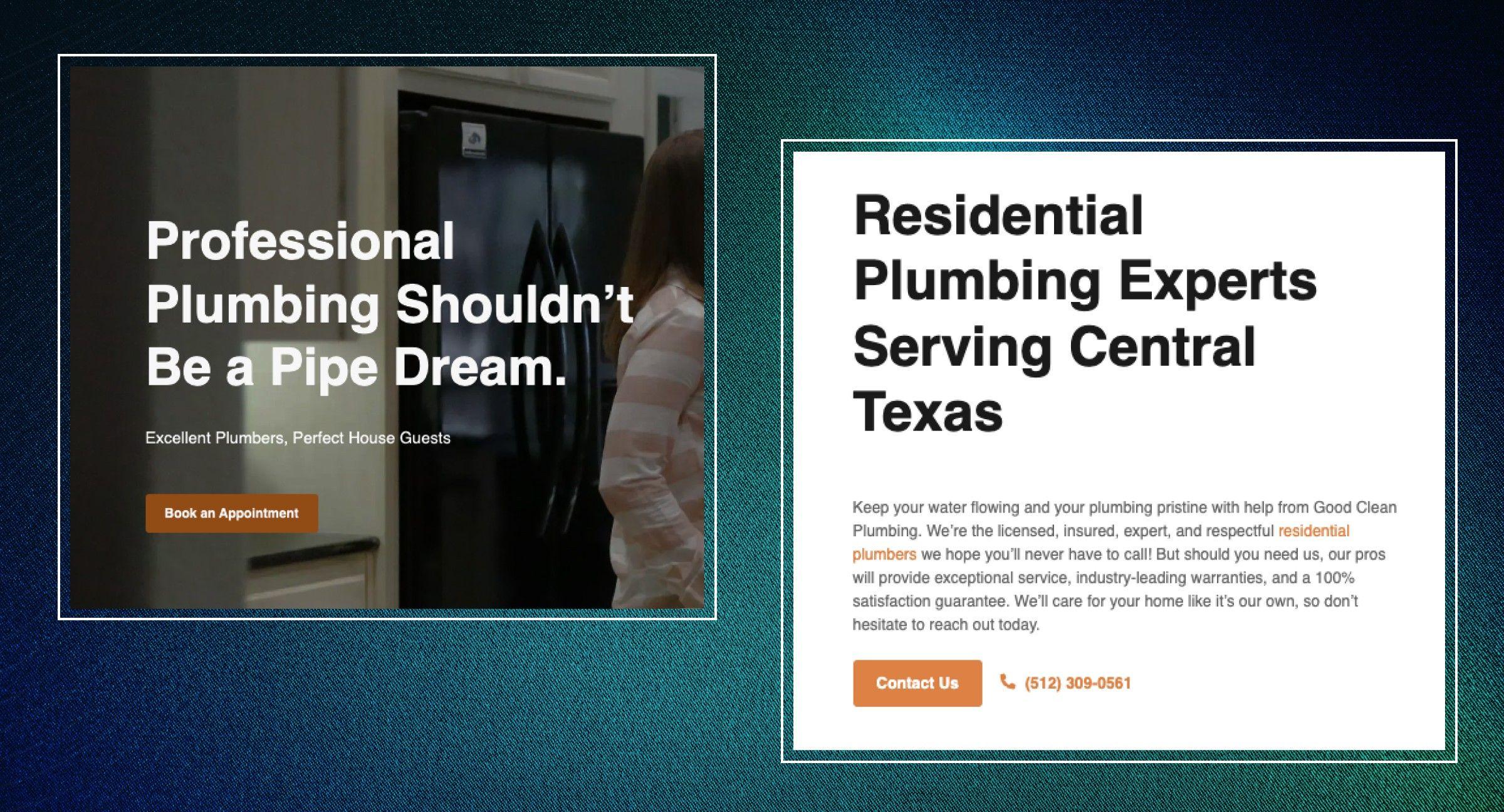 Good Clean Plumbing has a personable, warm and community-focused brand voice. The copy emphasizes the company's: