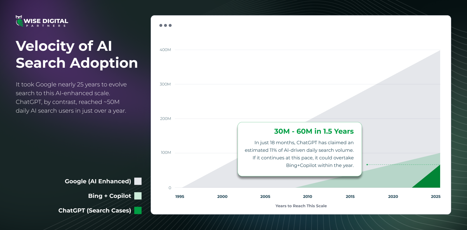 It has taken some search tools nearly 25 years to see significant daily user numbers–and AI tools just one year to rival them.
