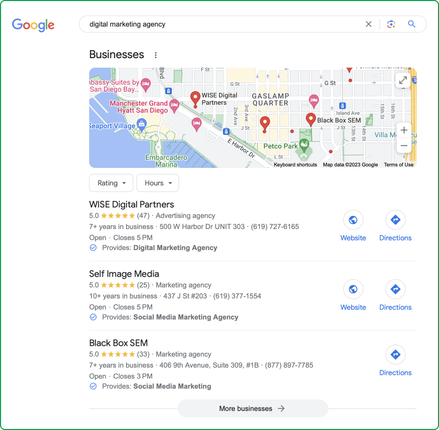For our partners in the U.S., we help set up and maintain over 50 local directories to accomplish this. It’s a ton of work, but the result is that you have a good chance of appearing in Google’s local pack or map pack — a prominent section in search results that appears when a user makes a search query with local intent. Plus, you’ll get better organic ranking results, too.