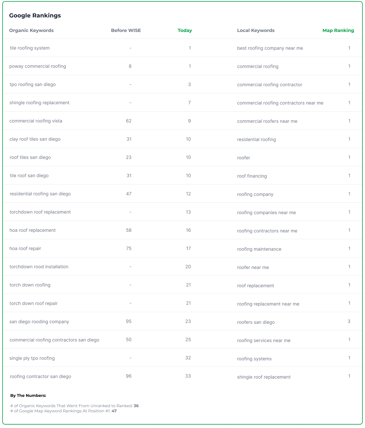 We can’t emphasize enough how awesome it is to take a client from being invisible (unranked) on Google to show up for keywords that matter most.