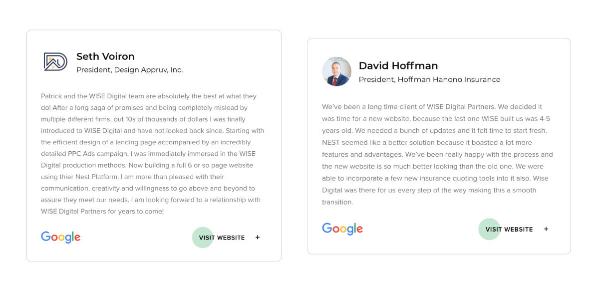 NEST is developed and supported by WISE Digital, an award-winning digital marketing agency. Over the last 15 years, our team has served thousands of businesses in over 40 industries. As of January 2021, our team handles the marketing for 100 brands in 24 industries, 15 states, two countries, and counting. With NEST, you get a world class team of experts for one low flat monthly rate.