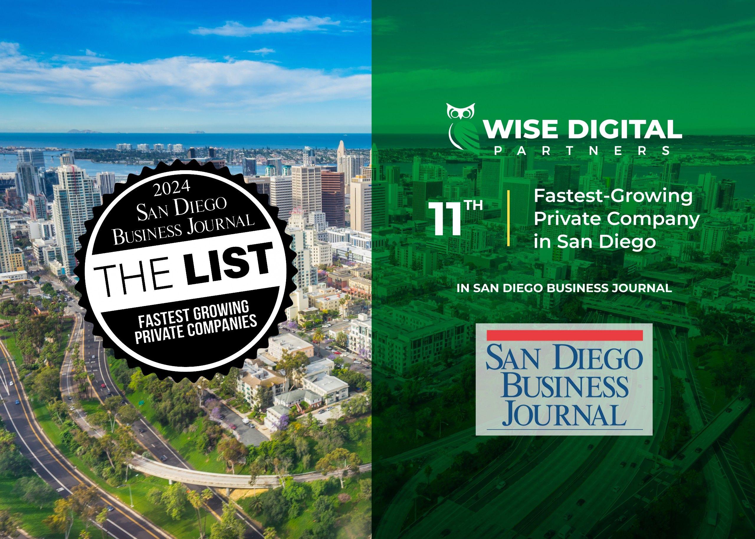 SAN DIEGO, October 31, 2024 — WISE Digital Partners is pleased to announce that it has earned a spot on San Diego Business Journal's 2024 Fastest-Growing Private Companies List, ranking in the top 50% of honorees.